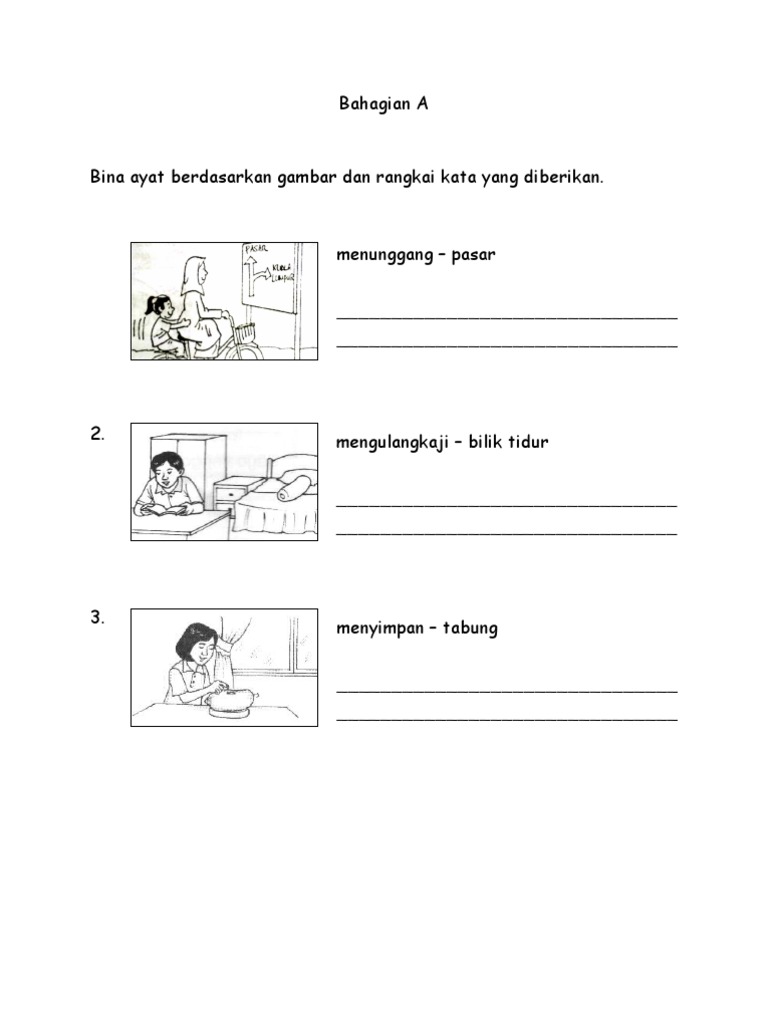 Bina Ayat Tahun3 Docx from imgv2-1-f.scribdassets.com Bina lima ayat dengan berpandukan gambar dibawah. 1 ayah sedang membaca surat khabar di atas sofa 2 abang sedang bermain komputer di atas kerusi 3 adik sedang bermain mainan yang membeli di aeon saya tau ini tiga bina ayat sahaja. Latihan dan jawapan bina ayat berdasarkan gambar | upsr bahasa melayu latihan dan jawapan bina ayat berdasarkan gambar. Pak abu membersihkan longkang yang tersumbat denganmenggunakan cangkul. Find this pin and more on bina ayat by chong lee lee. Latihan dan aktiviti education via www.pinterest.com. Bina ayat berdasarkan gambar dibawah. Find this pin and more on bina ayat by chong lee lee.